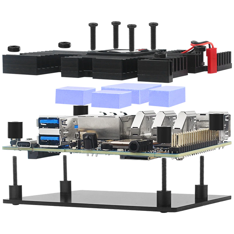 Корпус для orange pi 5 plus case имеет прочную металлическую основу и надежную конструкцию. При изготовлении предусмотрено все, что требуется для полноценной работы устройства. Изготовлено на территории Китая, полностью соответствует указанным габаритам. Корпус для orange pi 5 plus поставляется в черном цвете с вентилятором, термопрокладками и другими составляющими. Обеспечено активное охлаждение конструкции. Купить товар можно онлайн, на сайте всегда указана актуальная стоимость. Соответствие параметрам и высокое качество гарантировано. Предусмотрена возможность самовывоза или отправки СДЭКом.