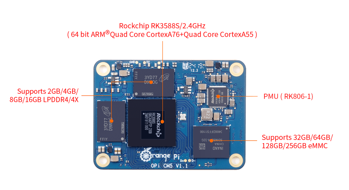 Orange Pi CM5 —сочетает компактные размеры и высокую производительность, что делает его удобным для встраивания в самые разные проекты.