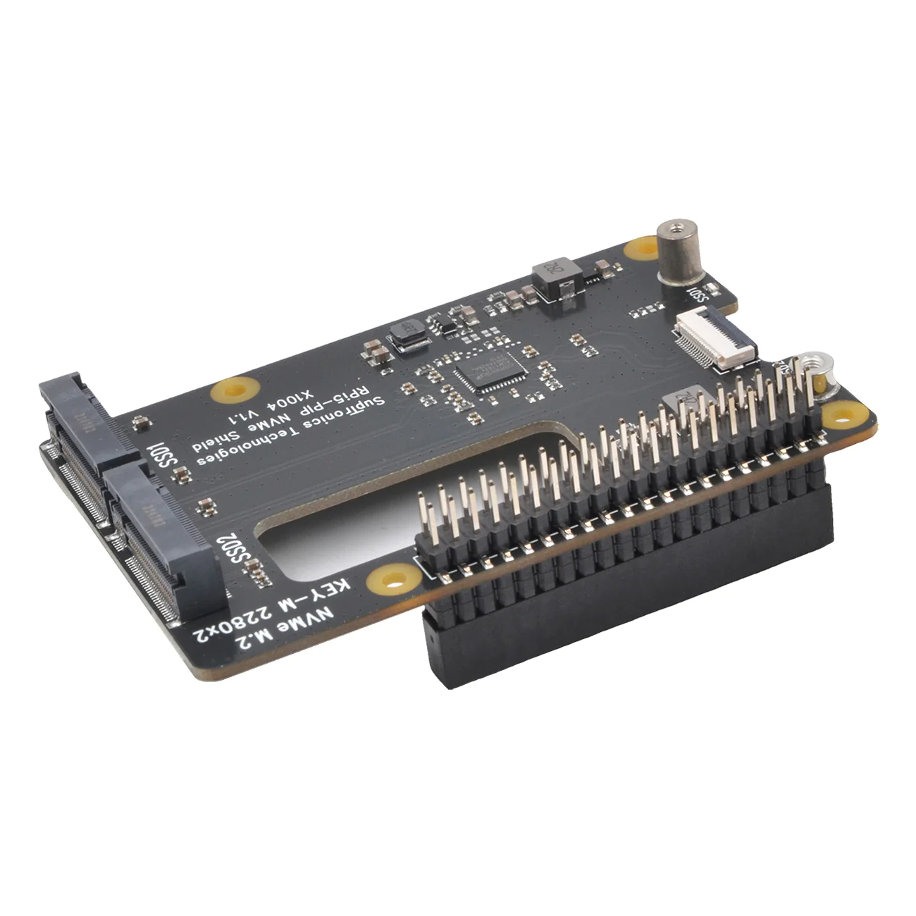 Уже доступна плата расширения pci m 2, позволяющая реализовать ряд типовых и нестандартных проектов. Модель идеальна для возможности подсоединения к Raspberry пары SSD дисков сразу. Это практично и функционально, что дает больше возможностей для пользователей. Пользователи отмечают, что продуманный дизайн девайса стоит назвать удачным, поскольку с помощью верхнего расположения намного проще стало обеспечить работу оригинального кулера-радиатора. Купить плату расширения можно в любой момент, воспользовавшись нашим сайтом. Платы расширения Raspberry pi 5 поставляются совместно с кабелем, набором для закрепления, переходной платой.